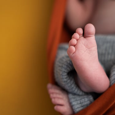 Durante la sesión newborn (recién nacido), combinamos fotos del bebé sin posados, auténticas y emotivas, con algunas imágenes más guiadas siempre que el bebé se sienta cómodo y los papás lo deseen.